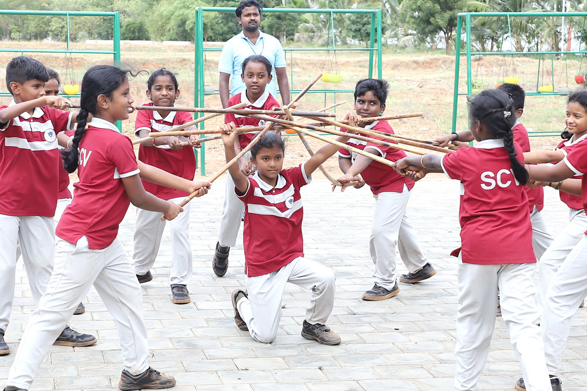 Extra Curricualr Activites YOGA DANCE SILAMBAM KARATE SKATTING Co - Curricular Activities Phonics Hindi (W & S) Abacus Art & Craft Drawing Club Academic ClubsTamil Elakkiya Mandram, English Literary Club, Math Magician Club, Young Scientist Club, Social Science Club. ECA & CCA ClubsQuiz club, Drama club, Fine arts club, Art & Craft club, Drawing club Social ClubsHealthy habit club,ECO club Social Activities NCC Scout & Guides NSS JRC ECO Club Sports Foot Ball Table Tennis Boxing Throw Ball Basket Ball Ball Badminton Cricket Throw Ball Foot Ball Ball Badminton